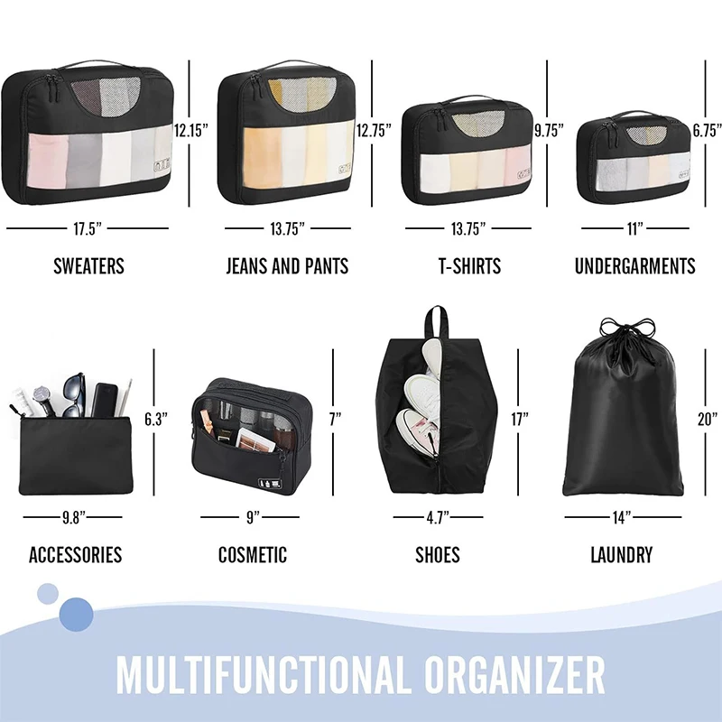 Stay organized on the go with this high-quality, waterproof 8-piece luggage organizer set — perfect for separating clothes and packing efficiently.