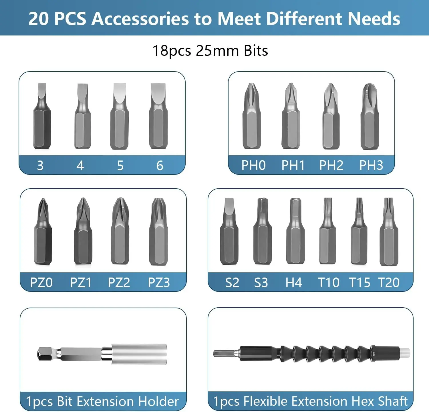 【Magnetic Design】 The electric drills cordless set has a total of 20 accessories, include 18*drill bits, 1*drill connecting rod, 1* flexible shaft, you can change the drill at will to meet your different needs. The magnetic design allows you to easily pick the bits, more efficient and save time