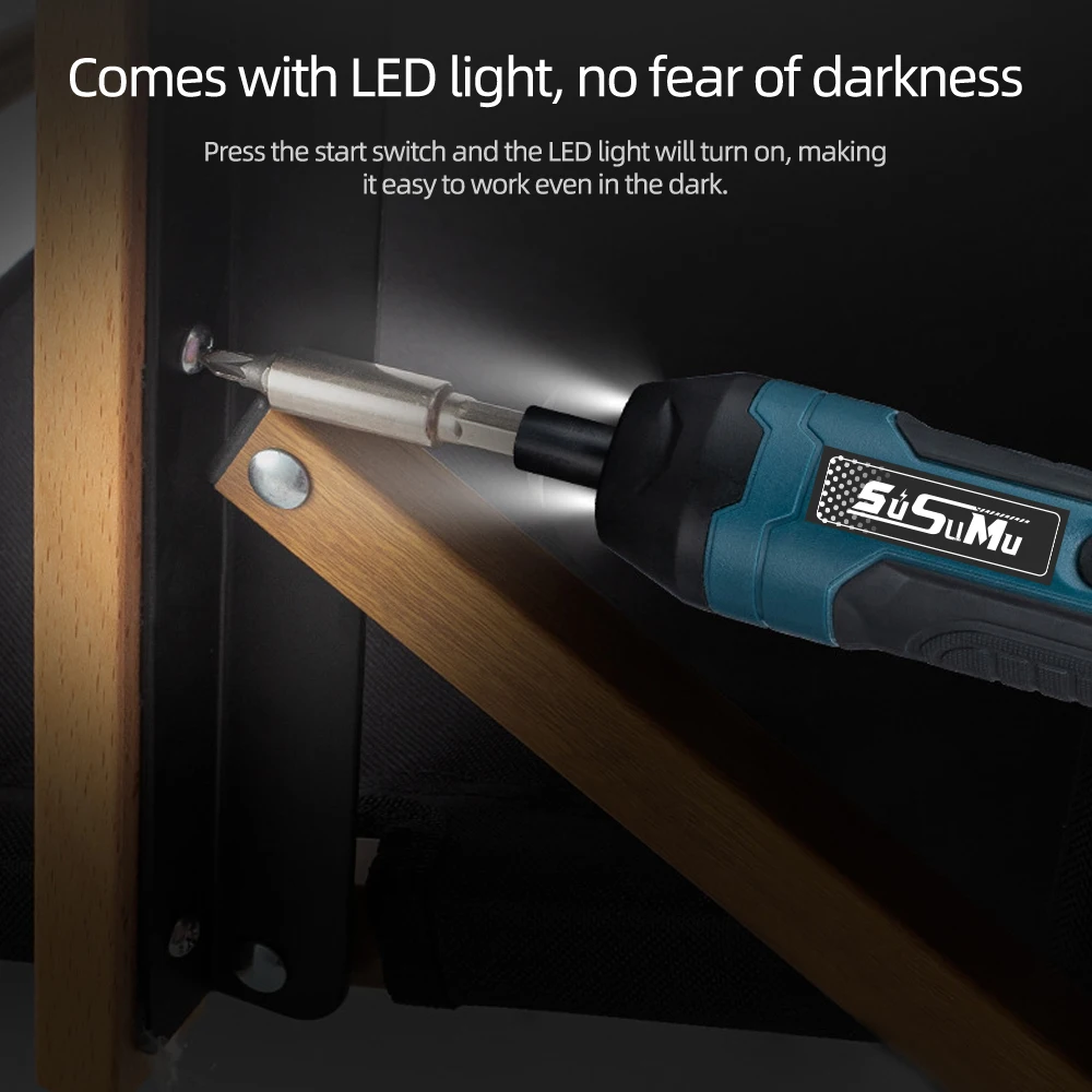 【Cordless Design & LED Lighting】The cordless design allows you to carry out your electric drilling project anywhere, in any corner. Rechargeable cordless screwdriver ideal for screwing into tight spaces and blind holes; When the electric drills is working, the bright LED will automatically light up, which can clearly point to the target, allowing you to work in the dark or Safer work in cramped work spaces