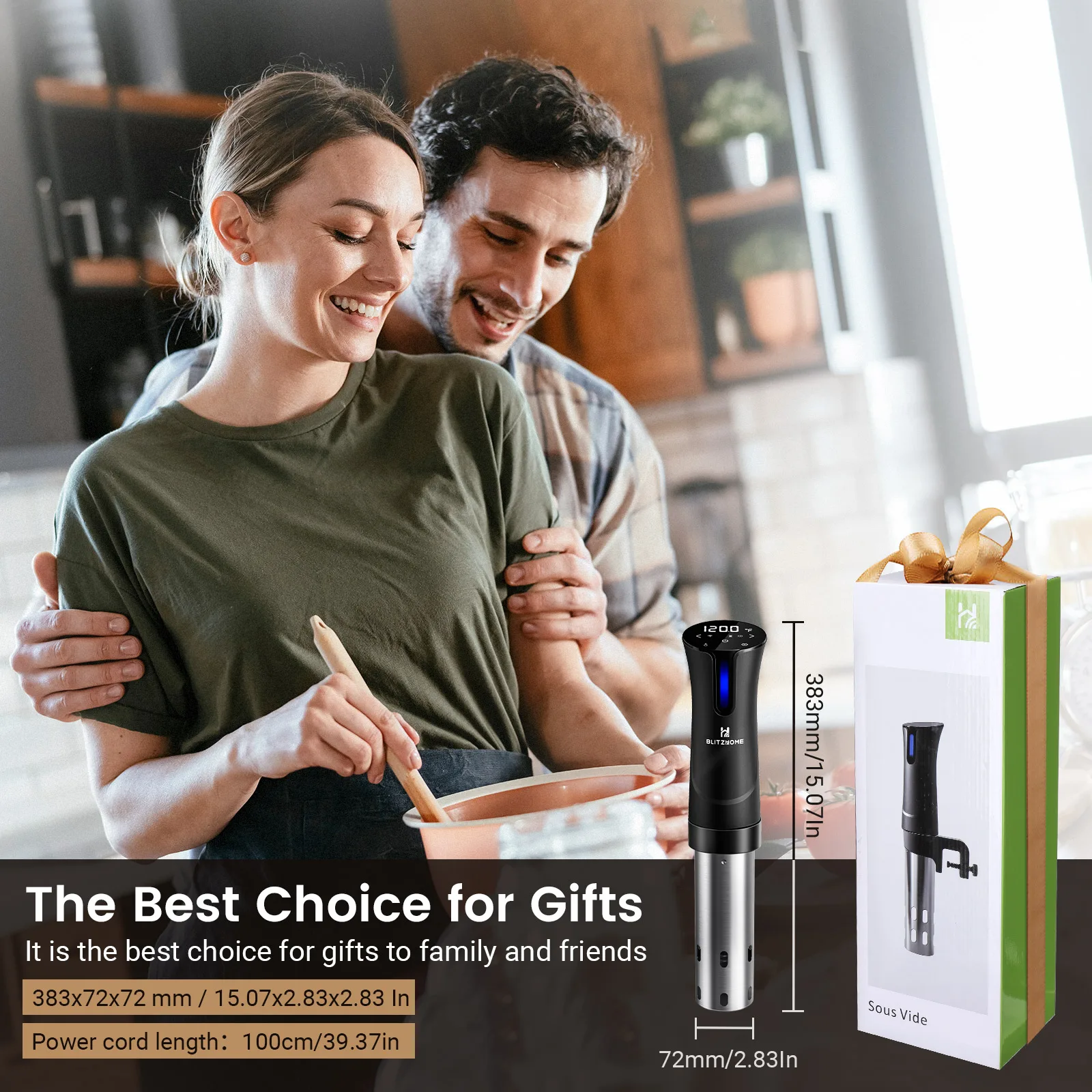 Sous Vide Machine, Blitzhome Sous Vide Cooker 1100 Watts, Intelligent Fast-Heating WiFi Connect Preset Recipes on APP Immersion Circulator Precise Cooker with Accurate Temperature and Timer