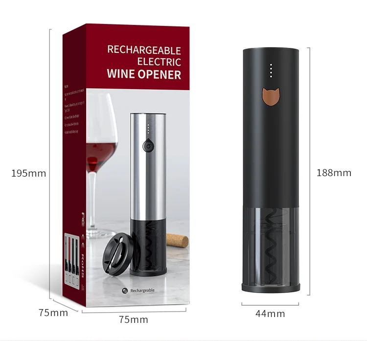 This rechargeable electric wine opener makes uncorking wine bottles quick and effortless with its one-touch operation. Sleek and cordless, it's designed for ease and style—perfect for home use, dinner parties, or as a thoughtful gift for wine lovers.