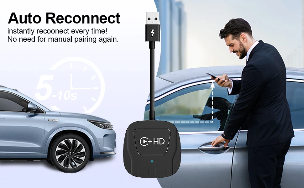 Seamless Wireless: Instantly converts factory-wired CarPlay to wireless — no more plugging in every time.